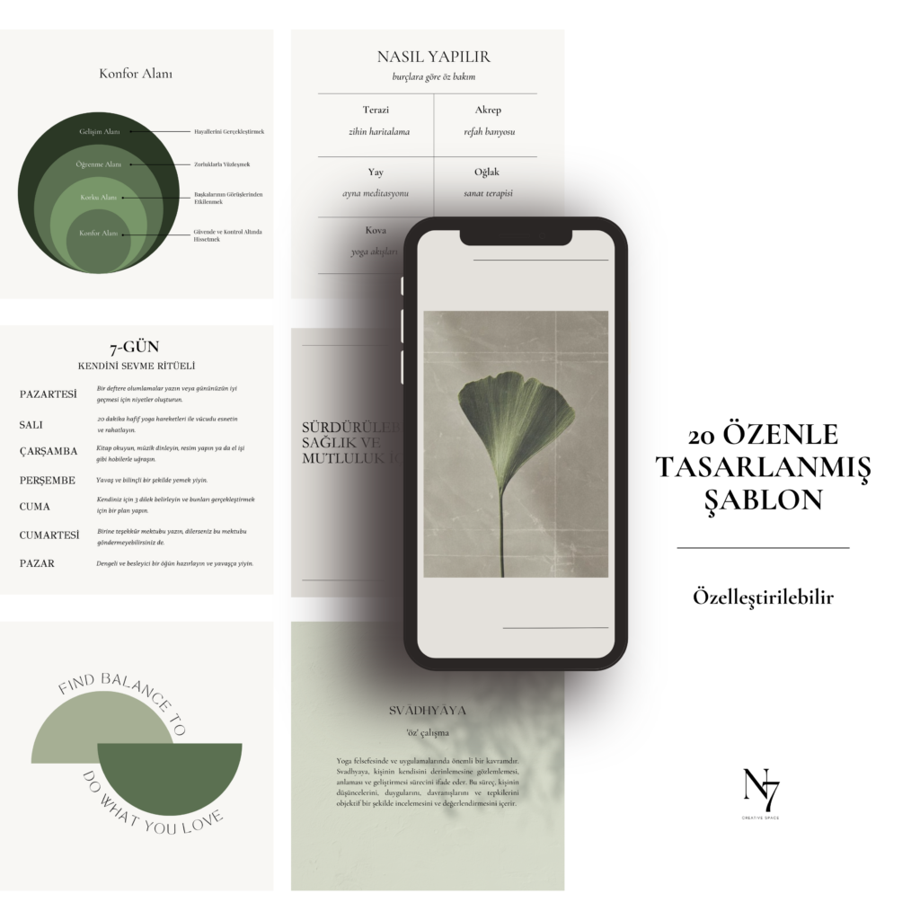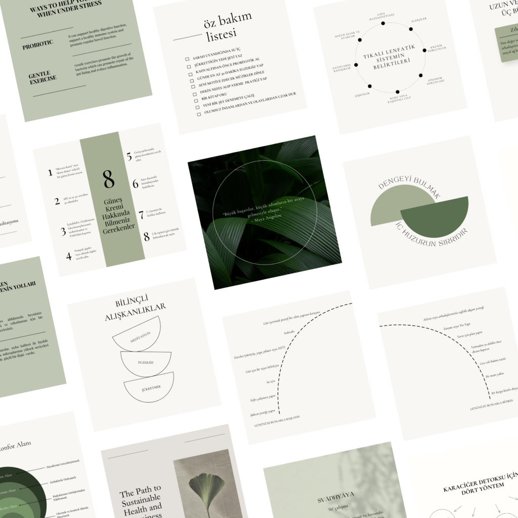20 Adet Özenle Tasarlanmış Şablon: Minimalist bir estetikle hazırlanmış dijital ürünümüz, sağlıklı ve holistik yaklaşımla, sağlıklı yaşam koçu tarafından sizler için hazırlanmıştır. 20 adet şablon, Instagram ve Pinterest profillerinizin estetiğini artırmakla kalmayıp takipçilerinize ve okuyucularınıza değerli bilgiler sunmak için tasarlanmıştır.